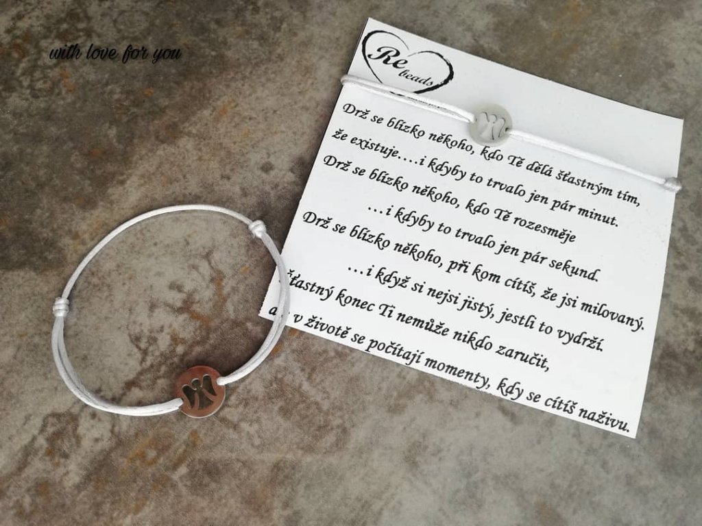 provázkový náramek ze stříbrné saténové šňůrky s ocelovým andělem