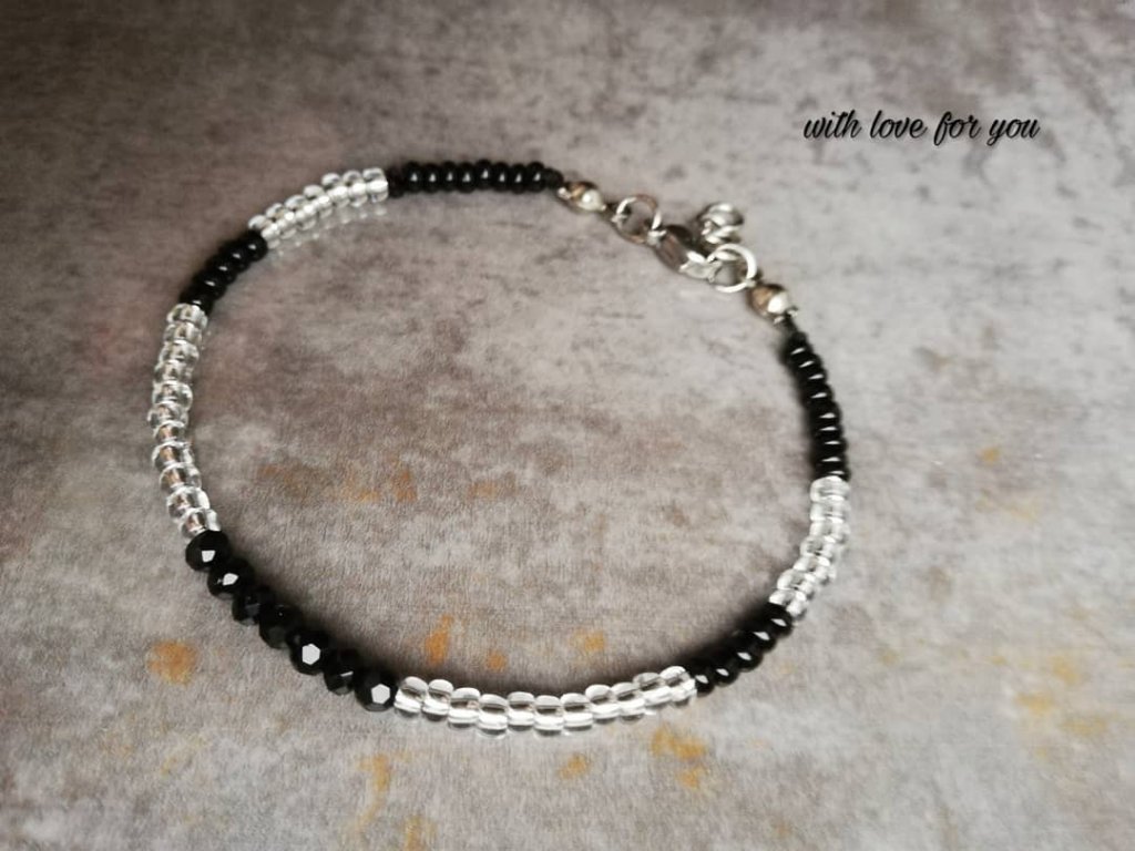 náramek z korálků Preciosa a broušených skleněných korálků s ocelovým zapínáním