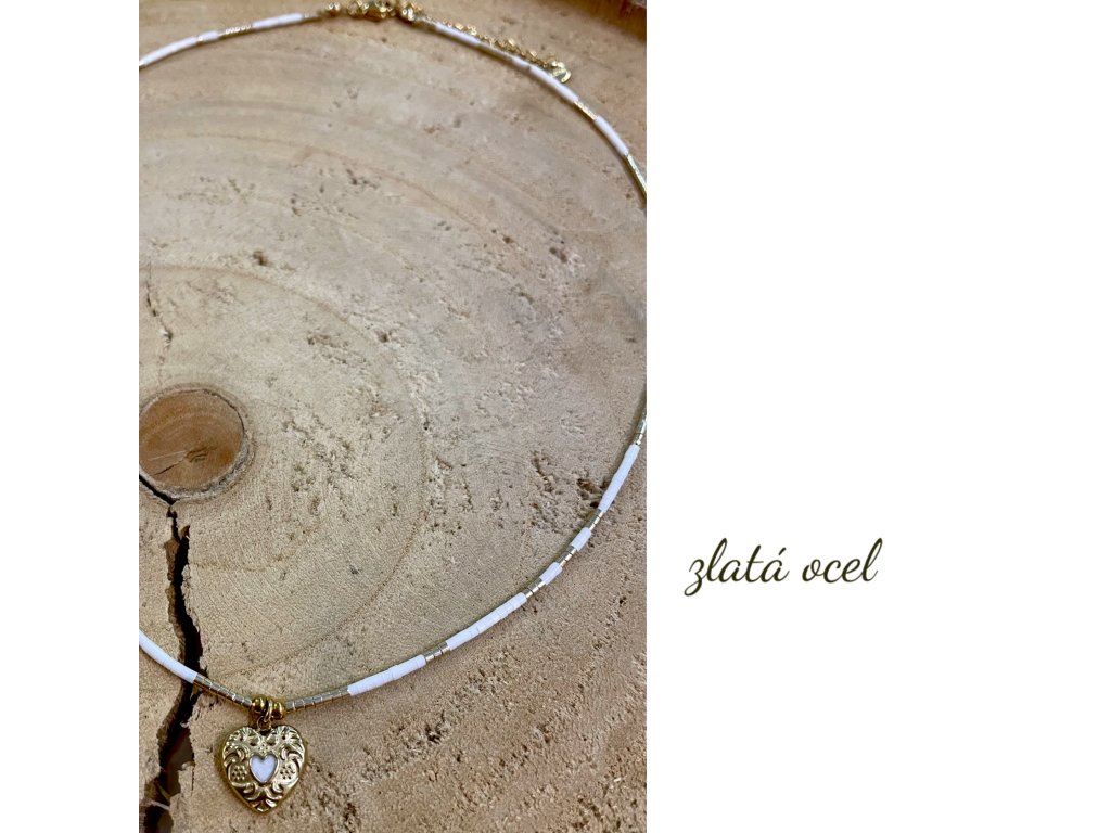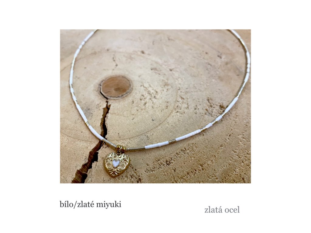 náhrdelník z miyuki korálků, přívěsek i zapínání jsou ocelové