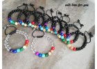 náramky z minerálních korálků, navlečených na pružném, ale pevném vlákně, nebo na saténové šňůrce s shamballa vázáním