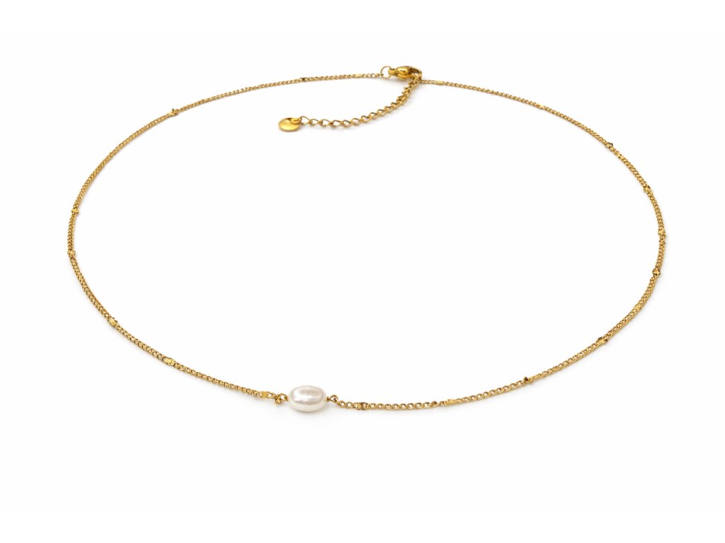 Jemný choker z zlatem plněné oceli působí minimalisticky a nadčasově. Decentní kovový základ krásně doplňuje říční perla, která je hlavním a přirozeně přitažlivým prvkem tohoto šperku.
