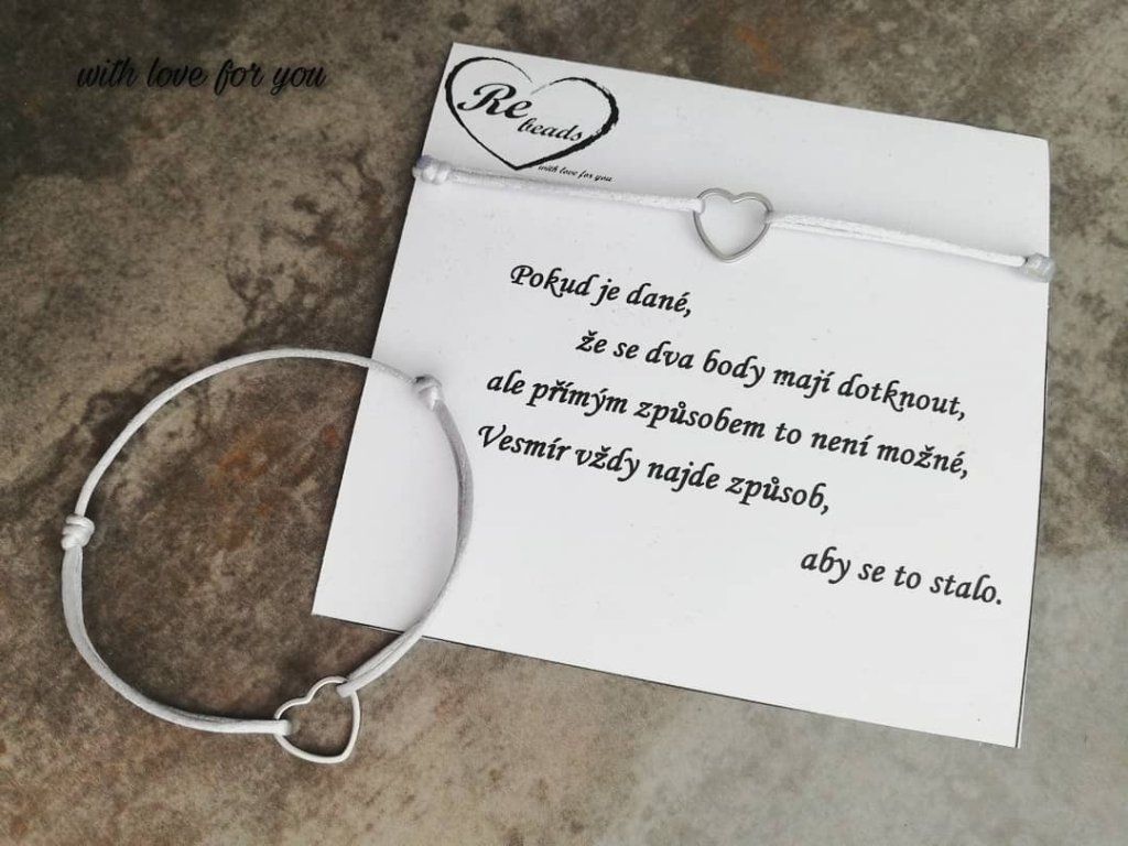 provázkový náramek ze stříbrné saténové šňůrky s ocelovým srdíčkem